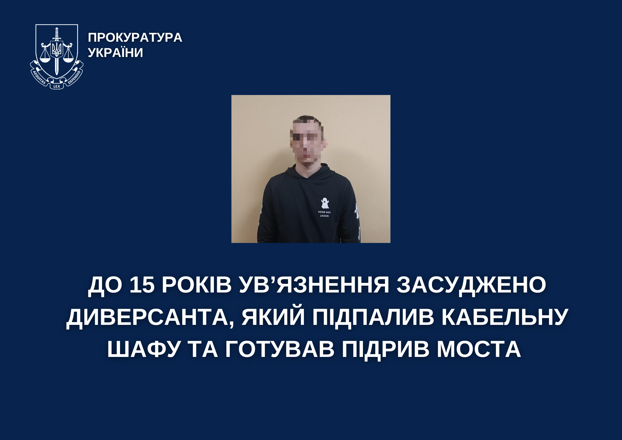 До 15 років ув’язнення засуджено диверсанта, який підпалив кабельну шафу та готував підрив моста