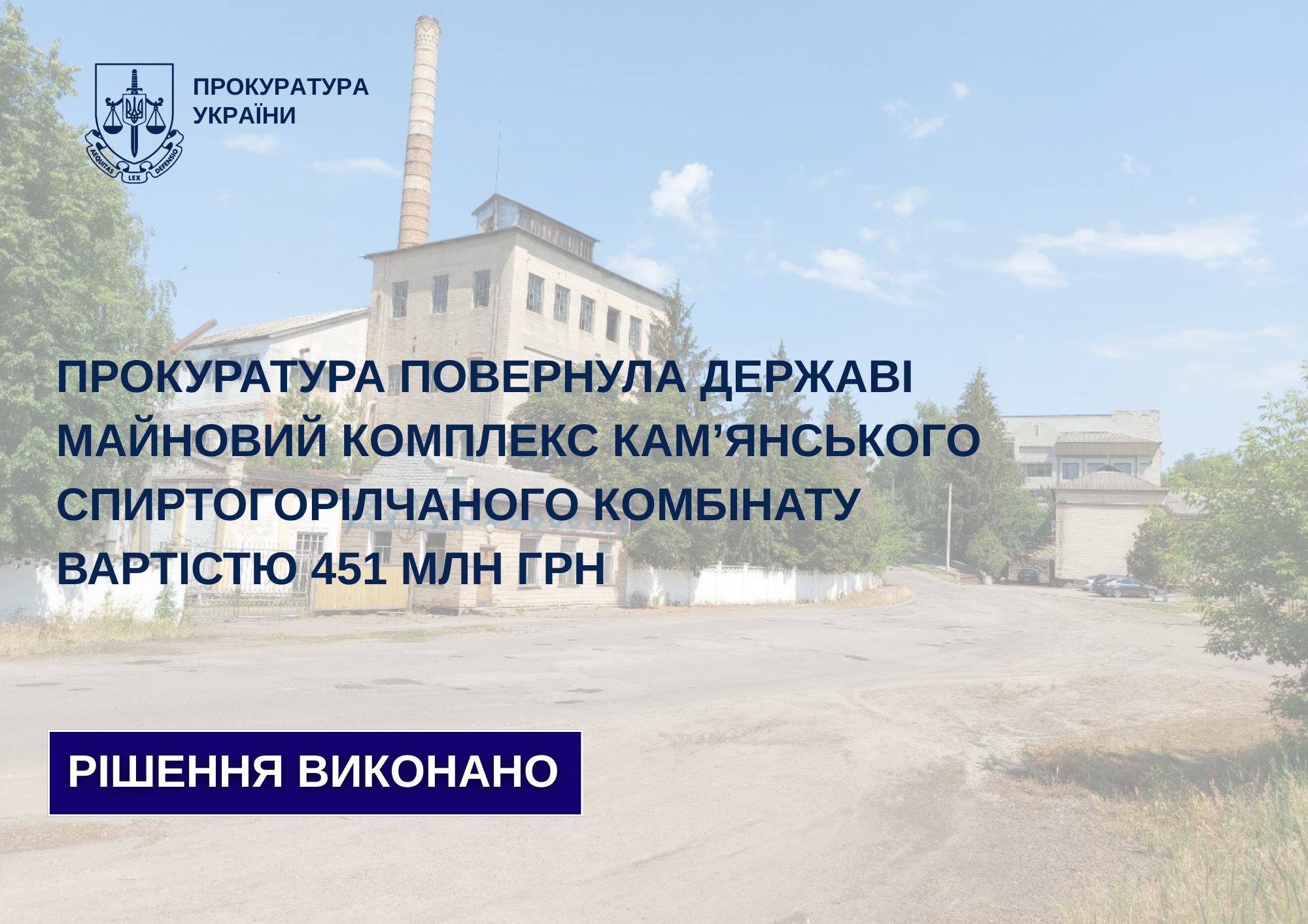 Прокуратура повернула державі майновий комплекс Кам’янського спиртогорілчаного комбінату вартістю 451 млн грн