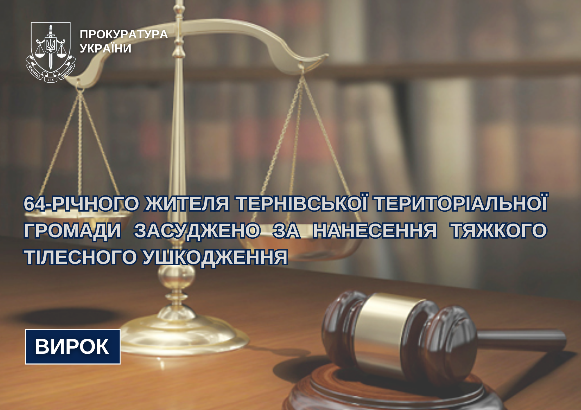 64-річного жителя Тернівської територіальної громади засуджено за нанесення тяжкого тілесного ушкодження